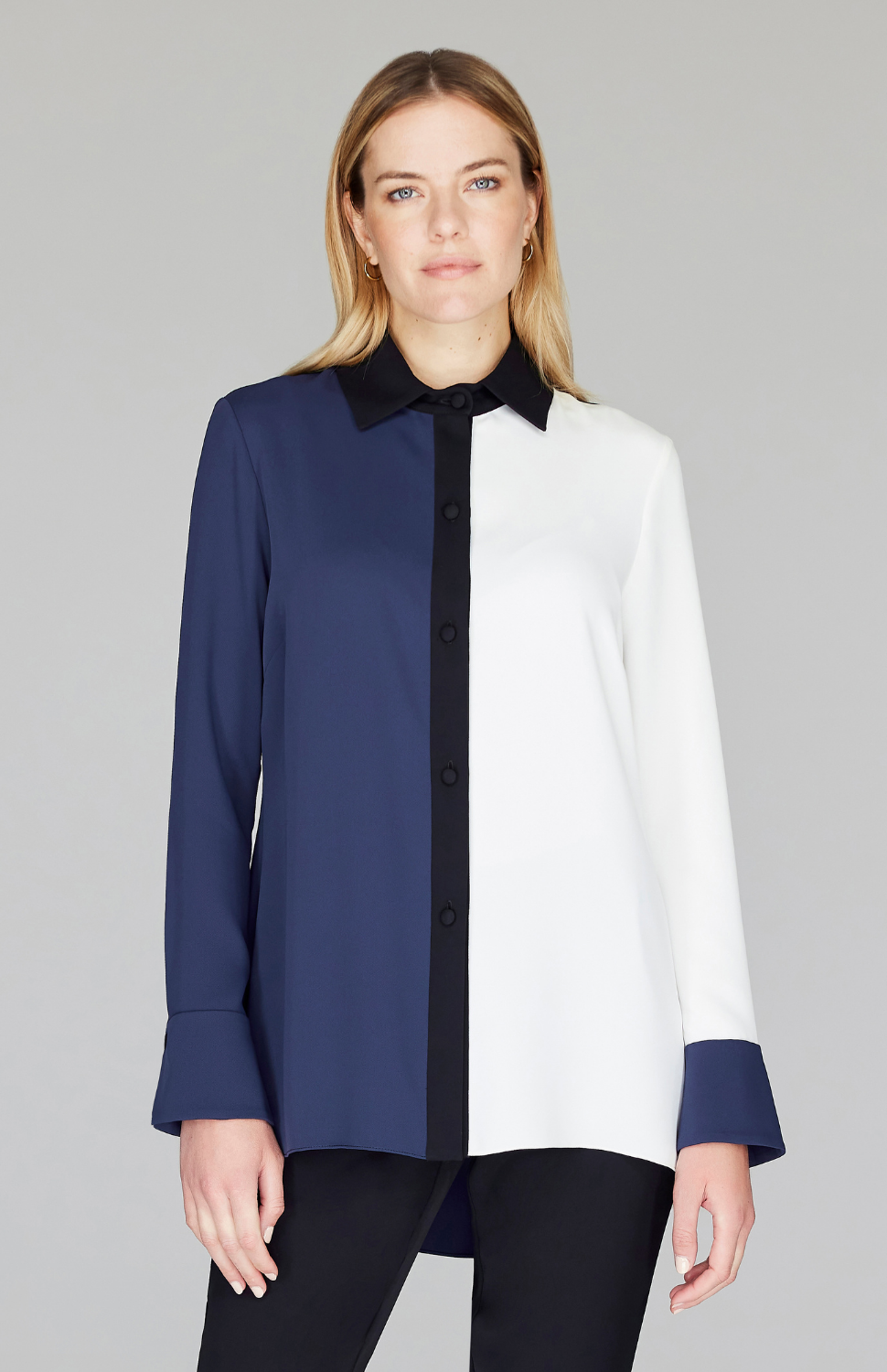 Color Block Lustrous Crepe Back Overlap Shirt - Moonlight 2
