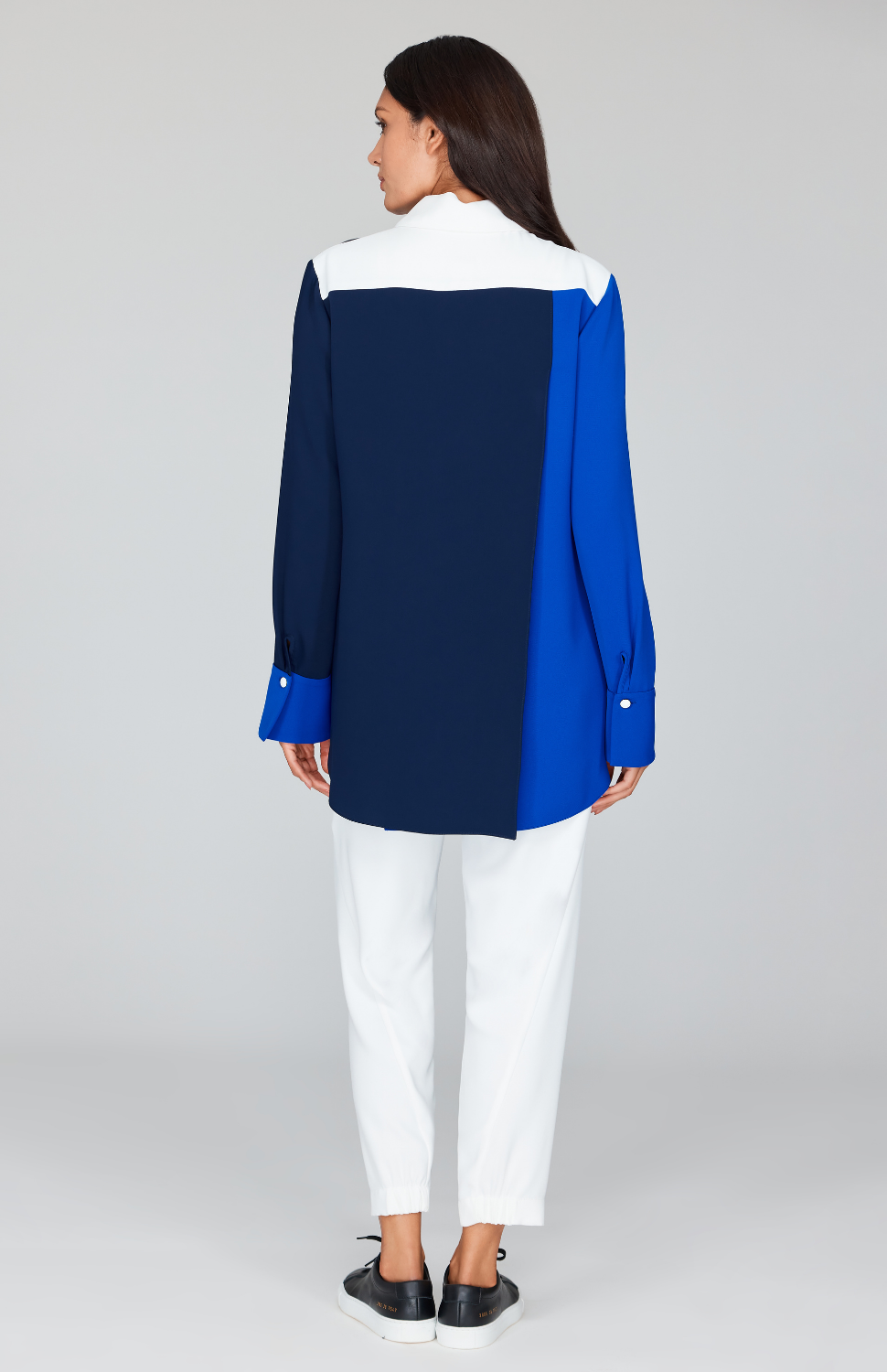 Color Block Lustrous Crepe Back Overlap Shirt - Twilight