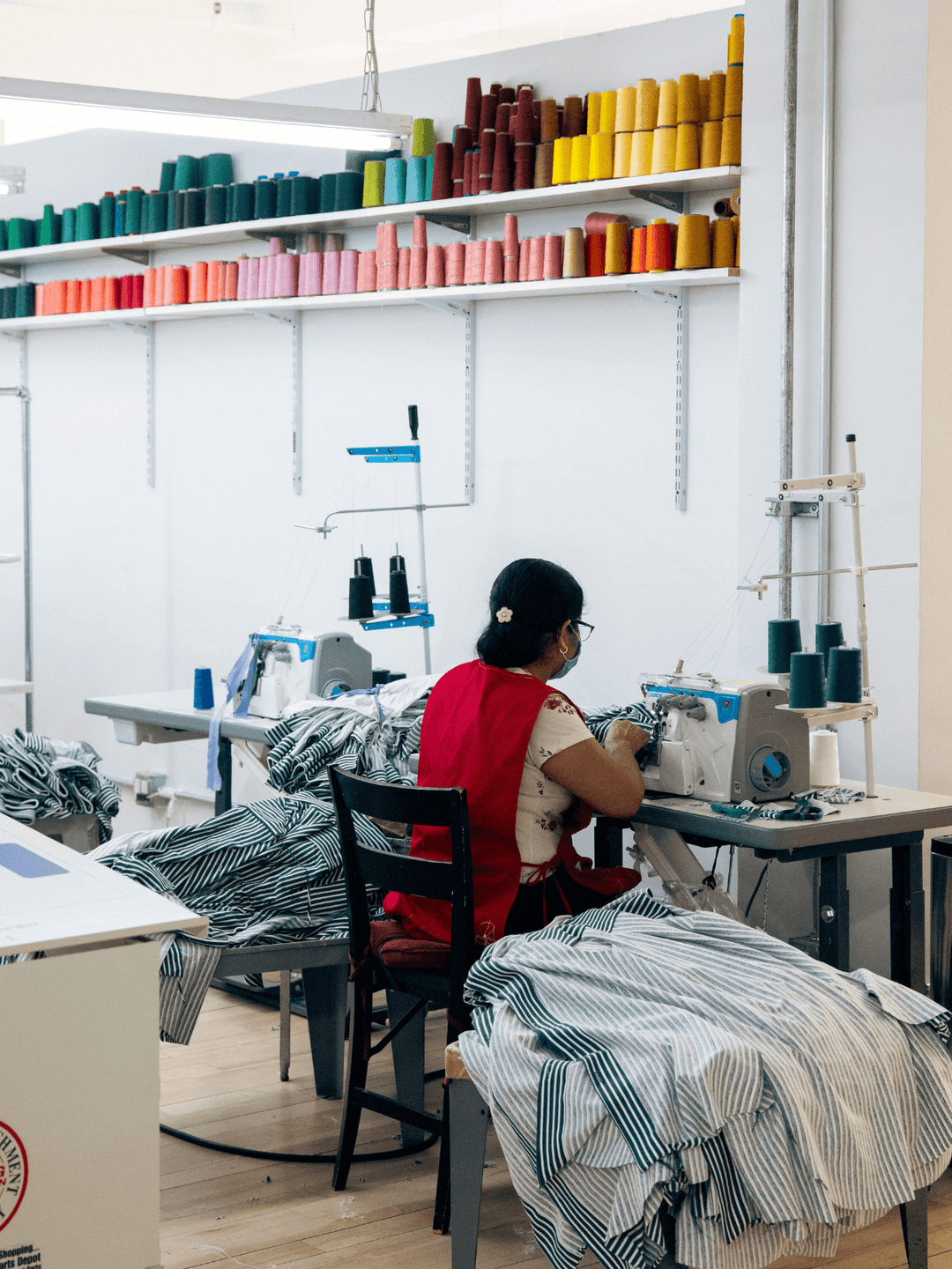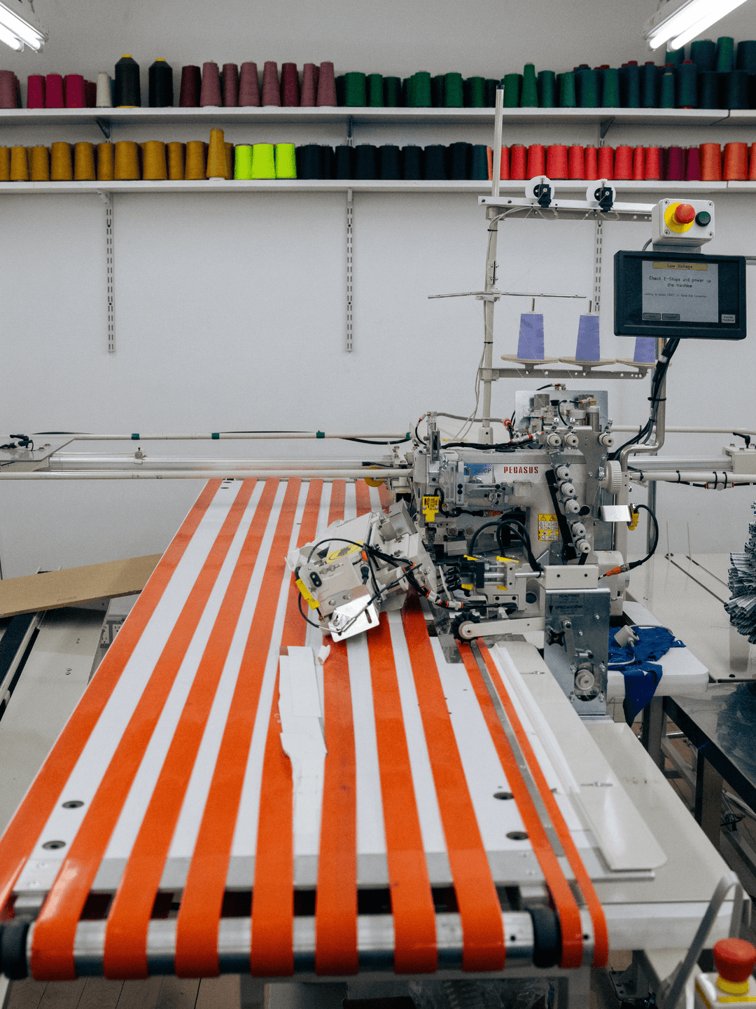 Beyond the standard sewing machines, merrow machines, and pressing and finishing equipment, the following specialty equipment is on-site.